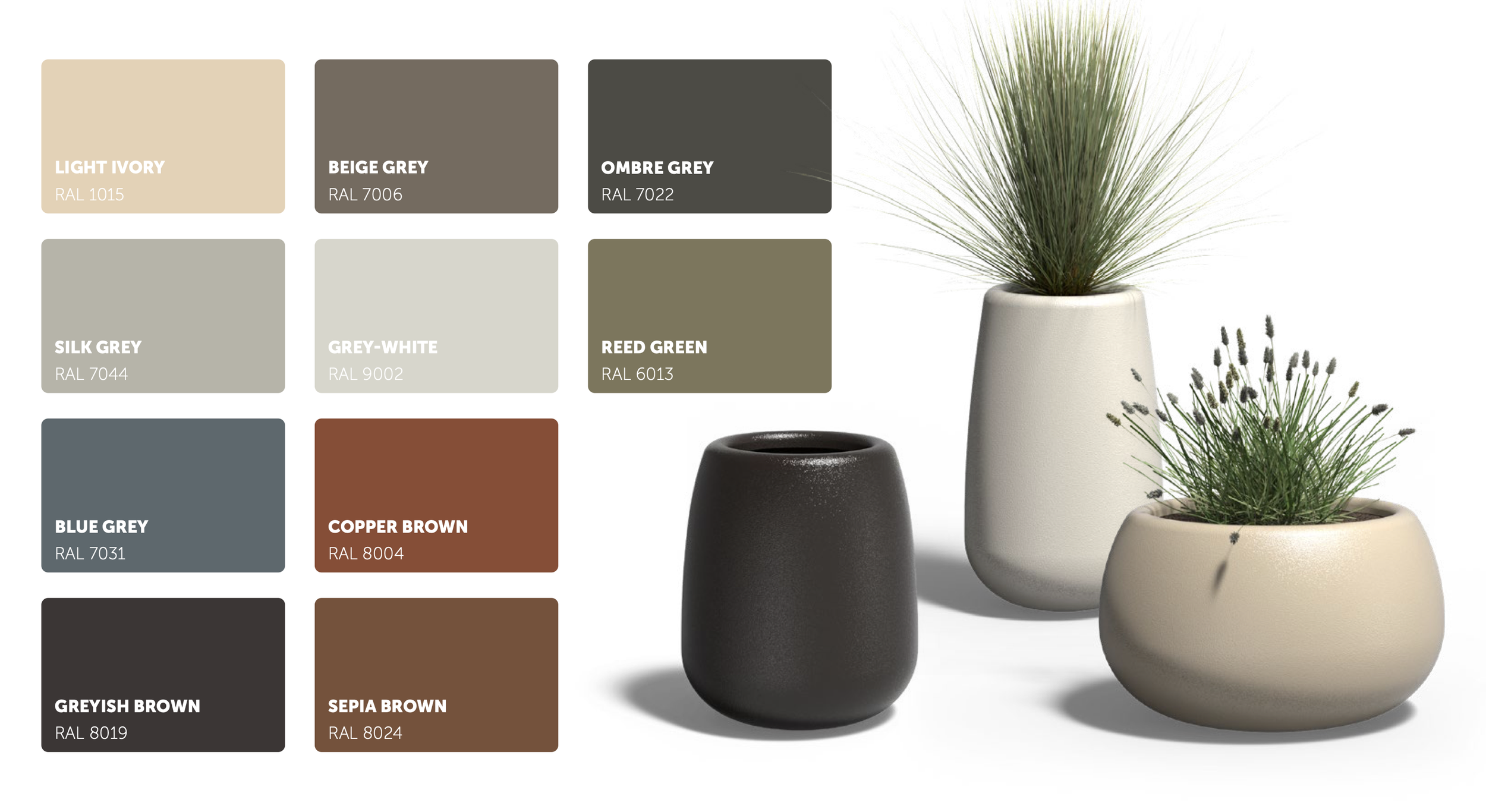 Earthy Colour Palette: Available in soothing, natural tones that harmonize perfectly with your garden's environment.